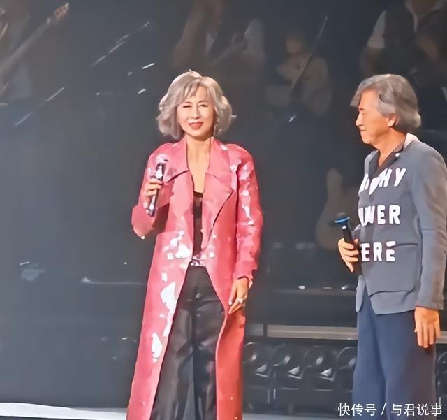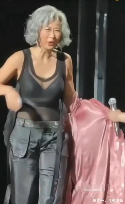 一开始她裹着粉色亮片长外套,看着端庄又大气,唱到《焚心以火》高潮时,工作人员上前帮她脱掉外套,里面黑色无袖透视装一下露了出来,薄纱上的亮片把身材曲线勾勒得清清楚楚。 站在旁边的林子祥都看愣了,等观众的尖叫声小了点,他拿着话筒慢悠悠补了句:“我都好久没见过了。”